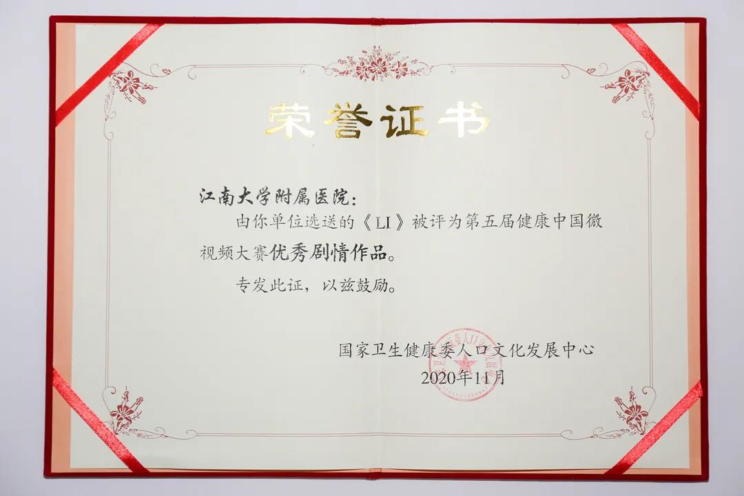 选送的微电影《LI》被评为第五届健康中国微视频大赛优秀剧情作品。