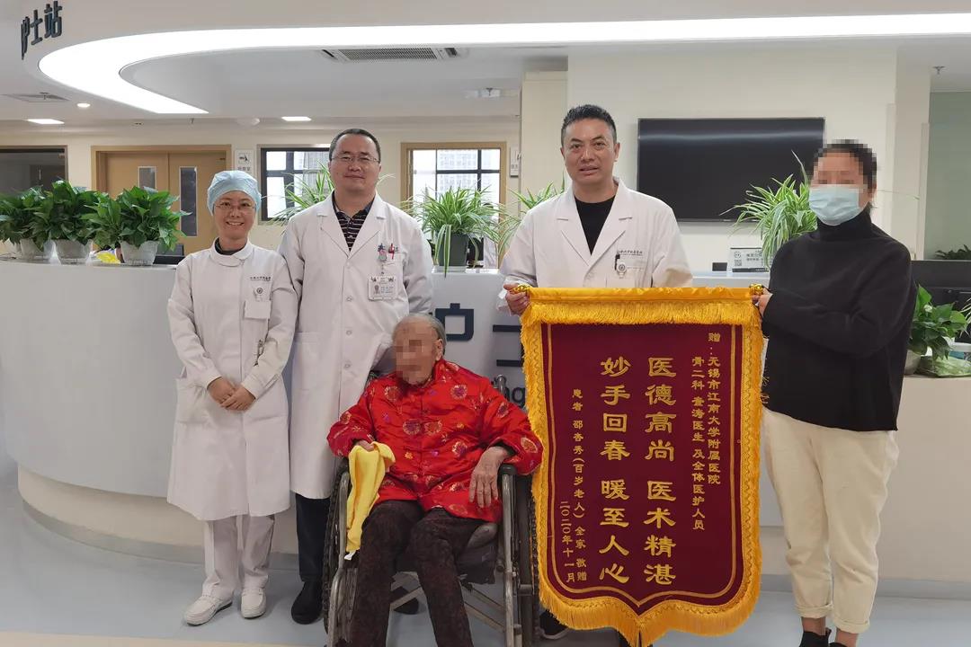 “妈妈在如此高龄获得新生,多亏了江大附院医护人员的救治和护理,我们第一次到这里来住院,不仅感受到舒适的诊疗环境,更得到了大家的悉心关怀,感受到了亲人一般的温暖,非常感谢!”家属连连道谢!