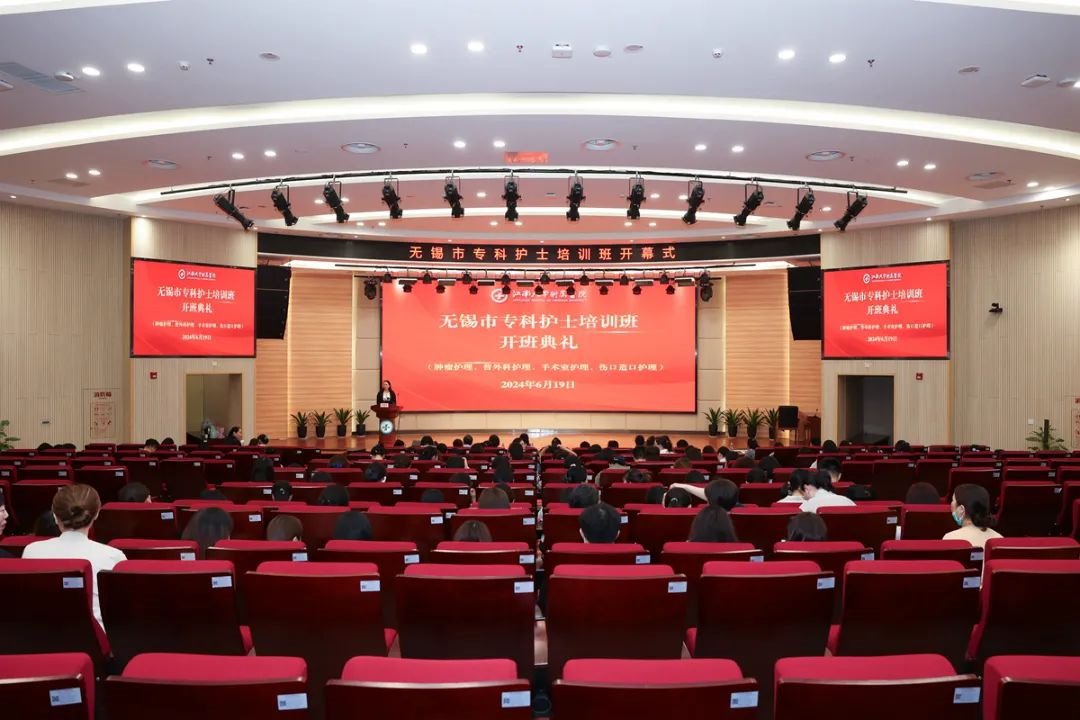 6月19日上午,无锡市专科护士培训基地(伤口造口、肿瘤、普外科、手术室护理)开班典礼在u体育 多功能厅顺利开班。